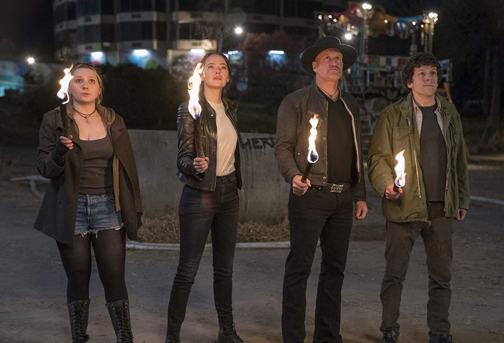 REVIEW: Zombieland: Double Tap (2019). Can you believe it’s been 10 years since Woody Harrelson, Jesse Eisenberg, Abigail Breslin, and Emma Stone traveled across zombie-run America together? Well the quartet is back for the long awaited sequel, and it turns out that life in Zombieland 10 years hence is pretty good, it’s just too bad zombies get in the way. So is this long-awaited follow-up to the original worth the wait, or are we over the whole zombie thing?